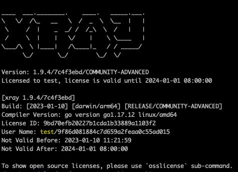 xray-license.lic才会生效 - 生效后,再次启动xray时,将会在banner上看到xray的高级版信息,以及到期时间
